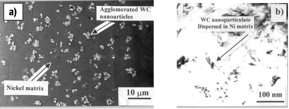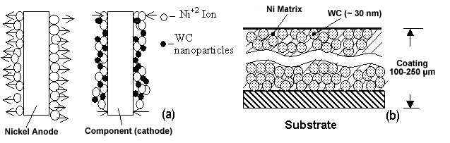 and (b) tribological coating containing n-WC/Co particles in a Ni
